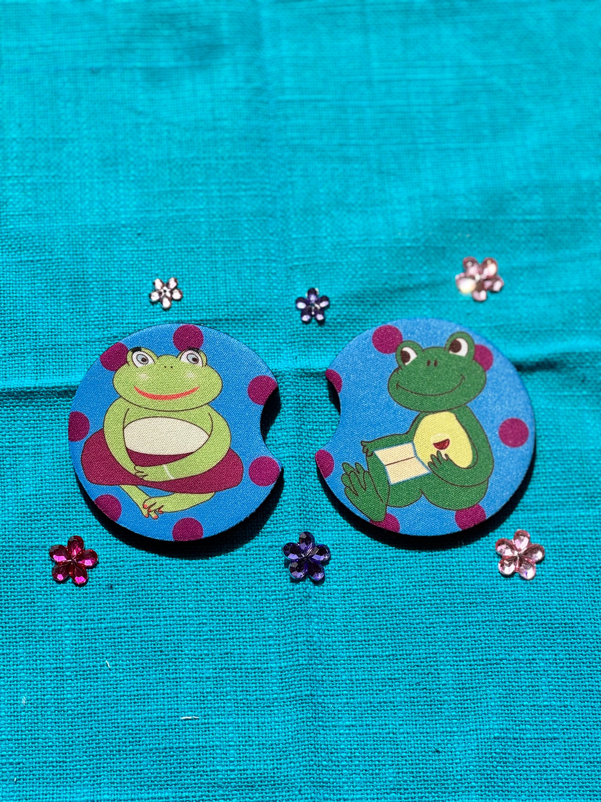 Frog Rubber Car Coasters Set Of 2, Adorable Frog Couple In Love, Boyfriend and Girlfriend
